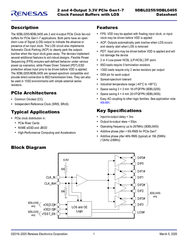 2-Output 3.3V PCIe Gen 1–7 Clock Fanout Buffer with LOS