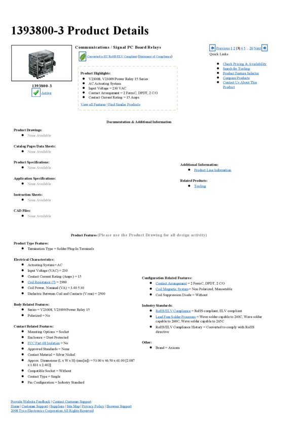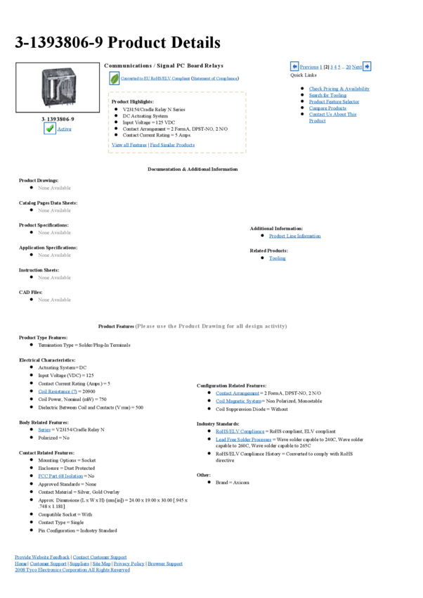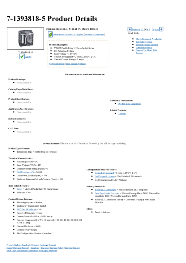 Electromechanical Relay SPST-NO/SPST-NC 5A 125VDC 20.9KOhm Plug-In