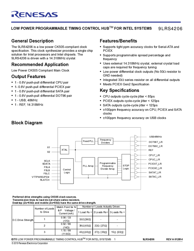 64-Pin CK505 Compatible Clock with Fully Integrated Voltage Regulator + Integrated Series Resistor