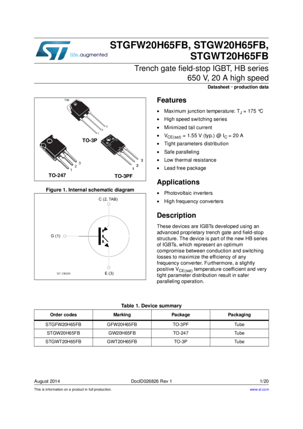 Trench gate field-stop IGBT, HB series 650 V, 20 A high speed