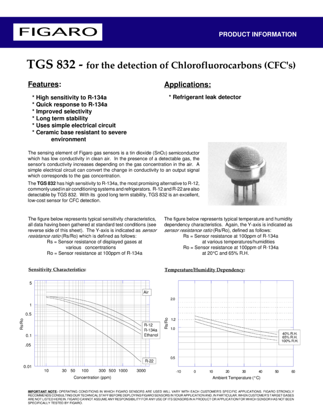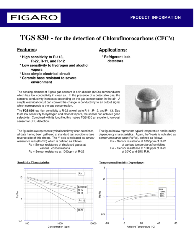 Czujnik chloro-fluoro-pochodnych węglowodorów [R-22] (, SUGEROWANE ZAMIENNIKI FIGTGS832-A00 / FIGTGS3830)