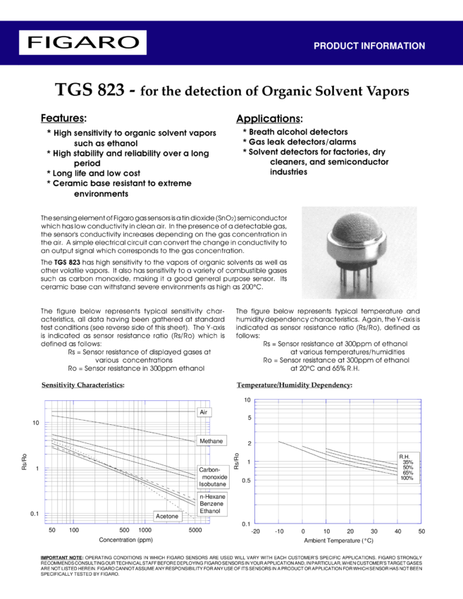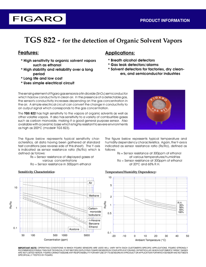 Czujnik etanolu, acetonu, benzenu, (50-5000ppm)