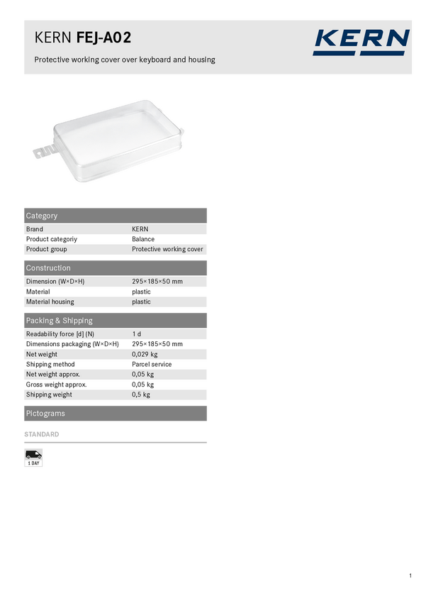 Osłona robocza FEJ-A02 Kern FEJ-A02 FEJA02