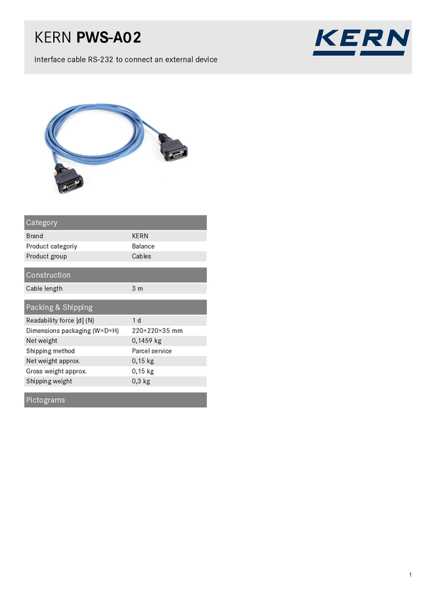 Kabel interfejsu RS-232 PWS-A02 Kern PWS-A02 PWSA02