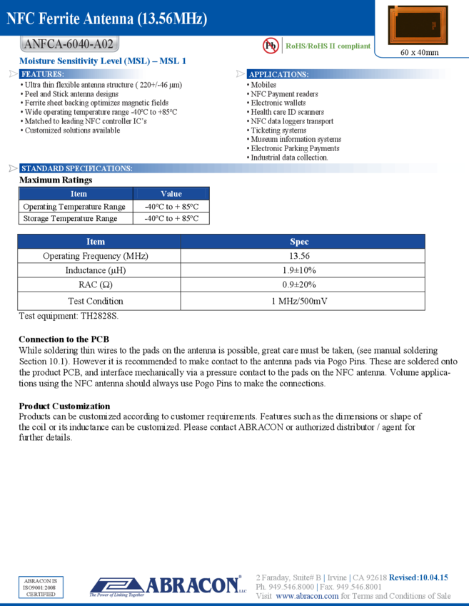 Antenna NFC Ferrite Antenna 13.56MHz SMD Box