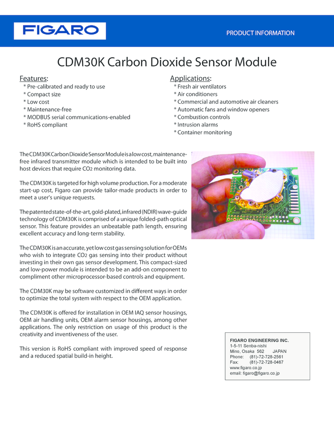 Detektor dwutlenku węgla (CO) - NDIR, 0-2000ppm, wyjście: 0..4 V, UART (ModBus), czas życia >15 lat bezobsługowo