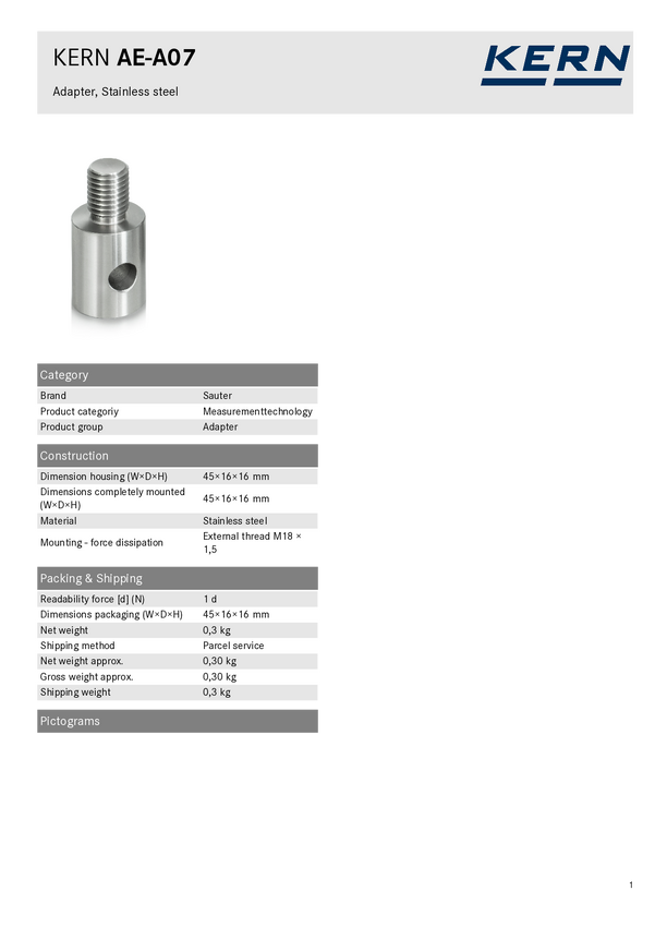 Adapter (gwint zewnętrzny M18 × 1,5) AE-A07 Kern AE-A07