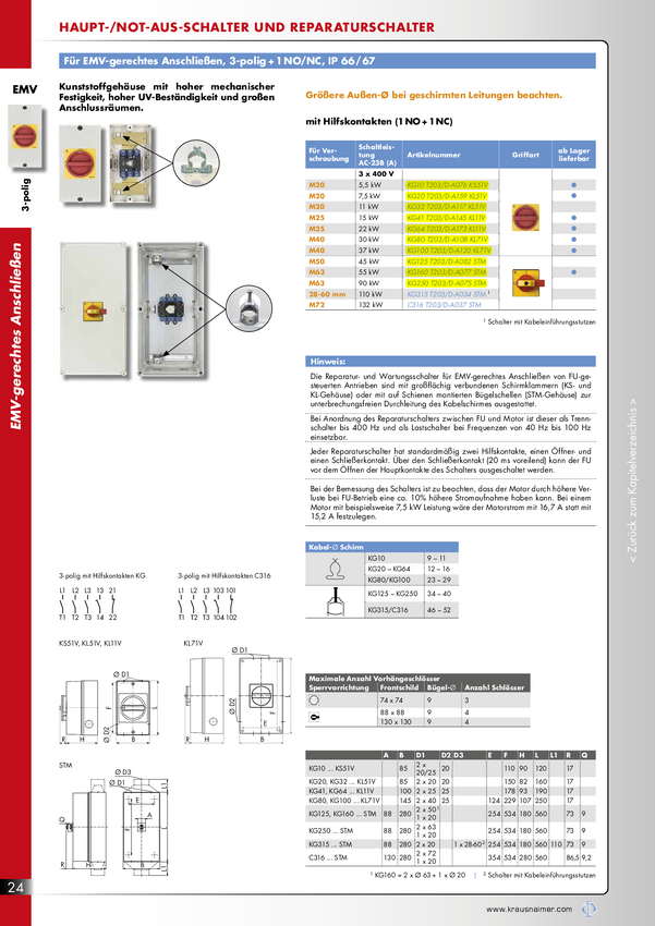 Wyłącznik serwisowy Kraus & Naimer KG10 T203/D-A076 KS51V, 3-biegunowy, 5,5 kW