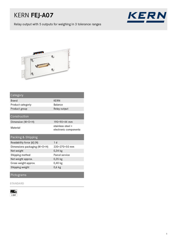 Wyjście przekaźnikowe FEJ-A07 Kern FEJ-A07 FEJA07