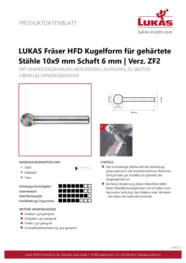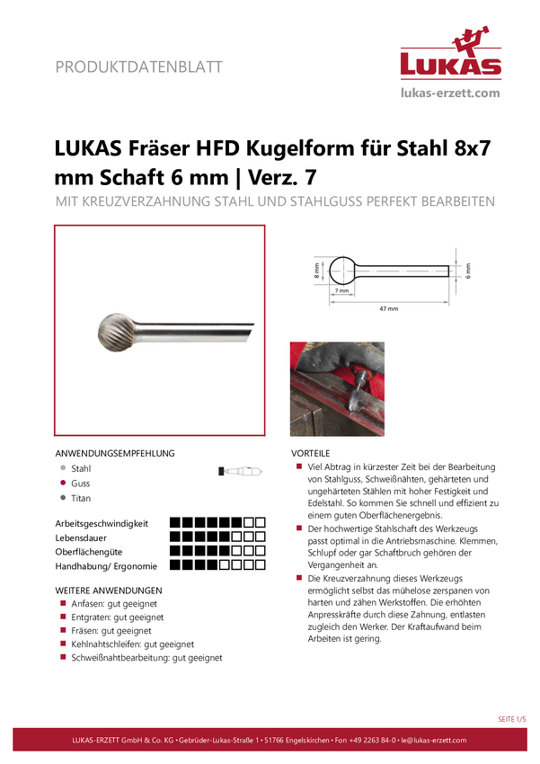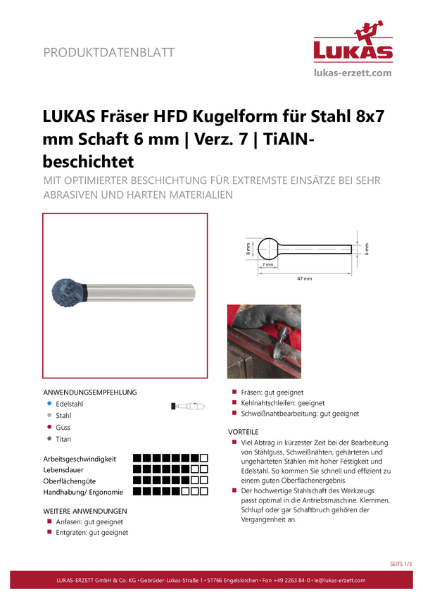 Frezarka LUKAS-ERZETT HFD 0807.06 Z7 TiAlN A10030808608TIALN, 1 szt.