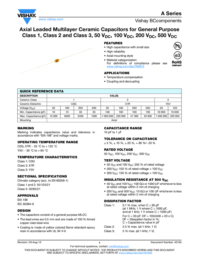 Cap Ceramic 0.0012uF 100V X7R 20% Axial 125°C Ammo Pack