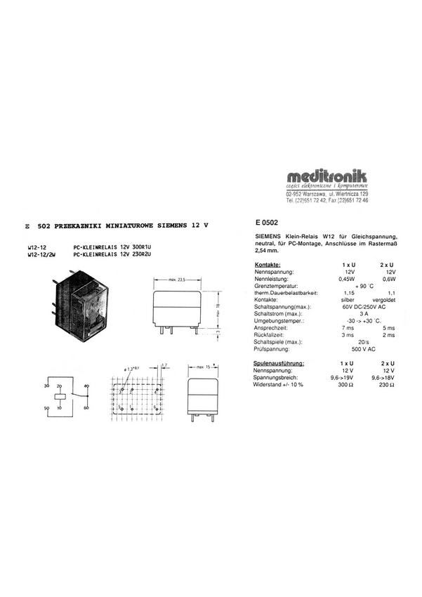 SIEMENS V23100-W1212-A103 / PC-KLEINRELAIS 12V 300 R1U