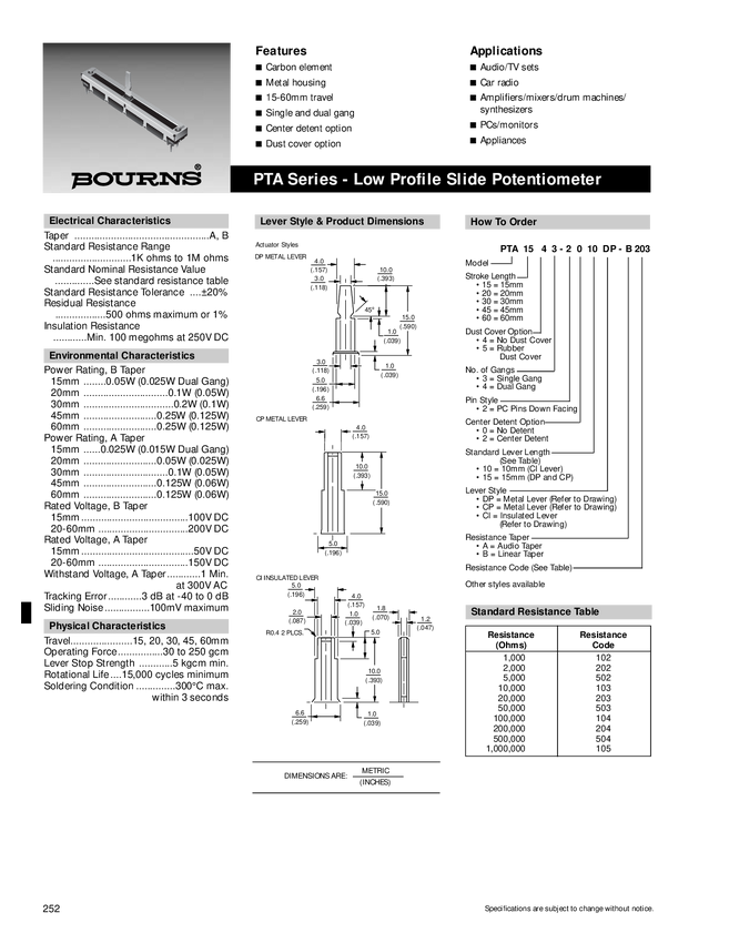 Potencjometr mono leżący 15 mm, 10 kohm, 1B - liniowy Alps podaje dł.ośki jako LM i dł.definiowna jest w katalogu