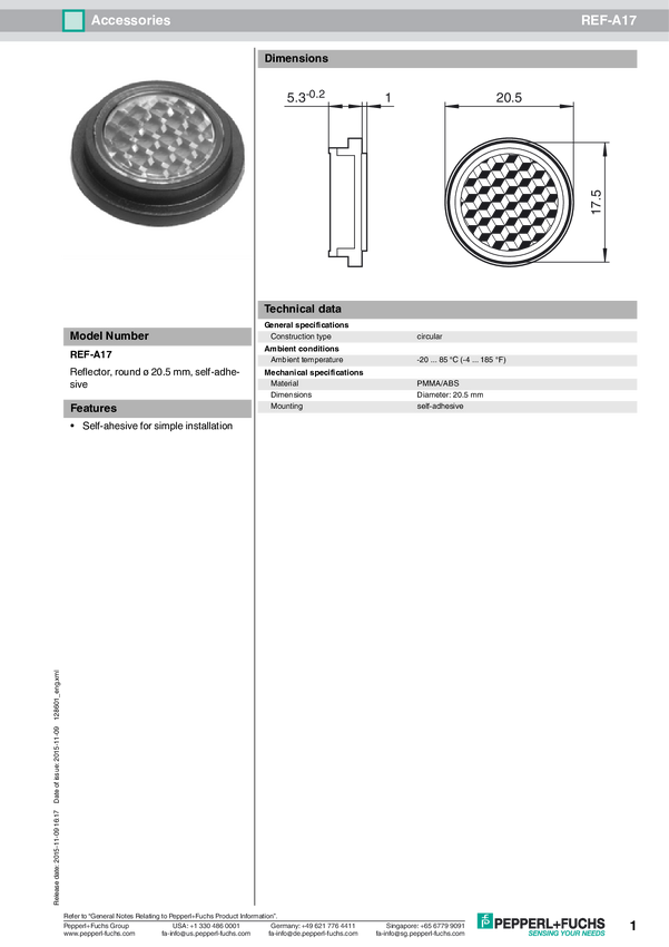 Odbłyśnik Pepperl+Fuchs REF-A17 128601 5 szt.