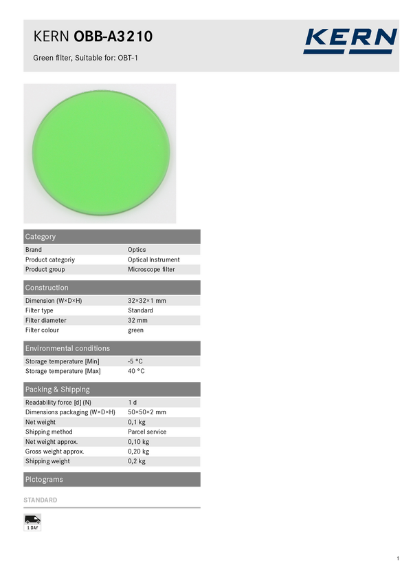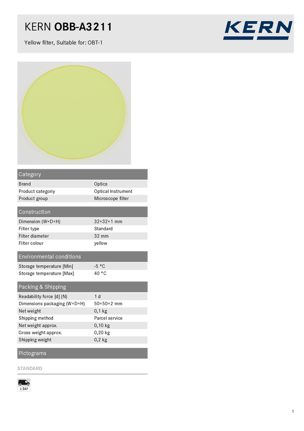Filtr do mikroskopu Kern OBBA3210 OBB-A3210