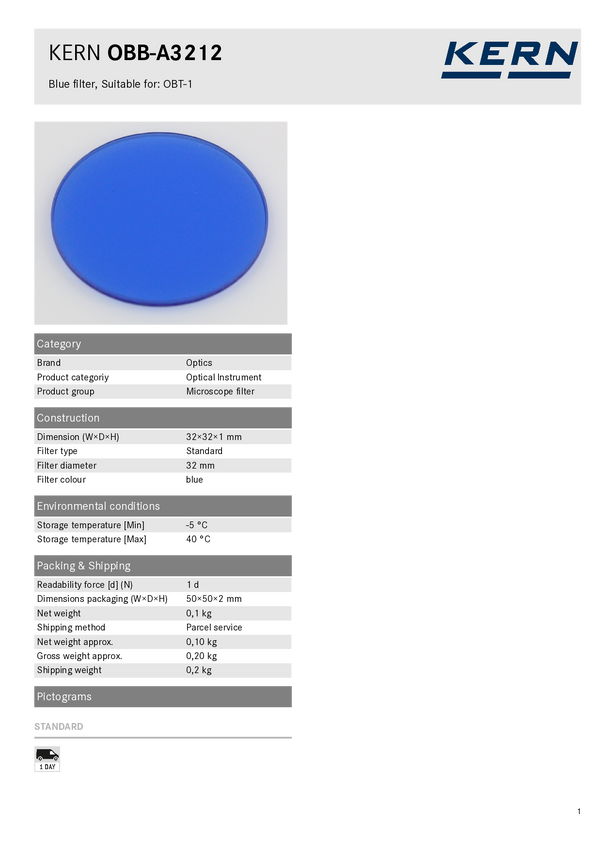 Filtr do mikroskopu Kern OBBA3212 OBB-A3212