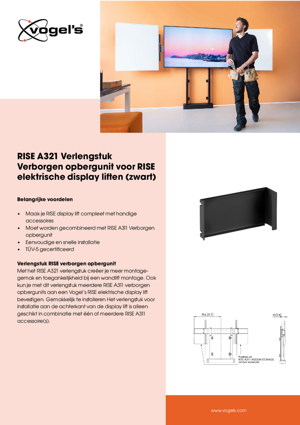 Vogel's Przedłużenie schowka RISE A321 1 Wyświetlacz czarny
