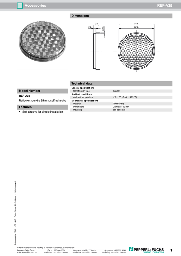 Odbłyśnik Pepperl+Fuchs REF-A35 113956 5 szt.