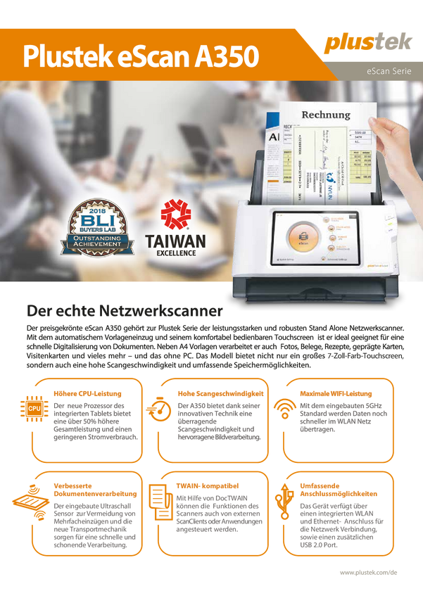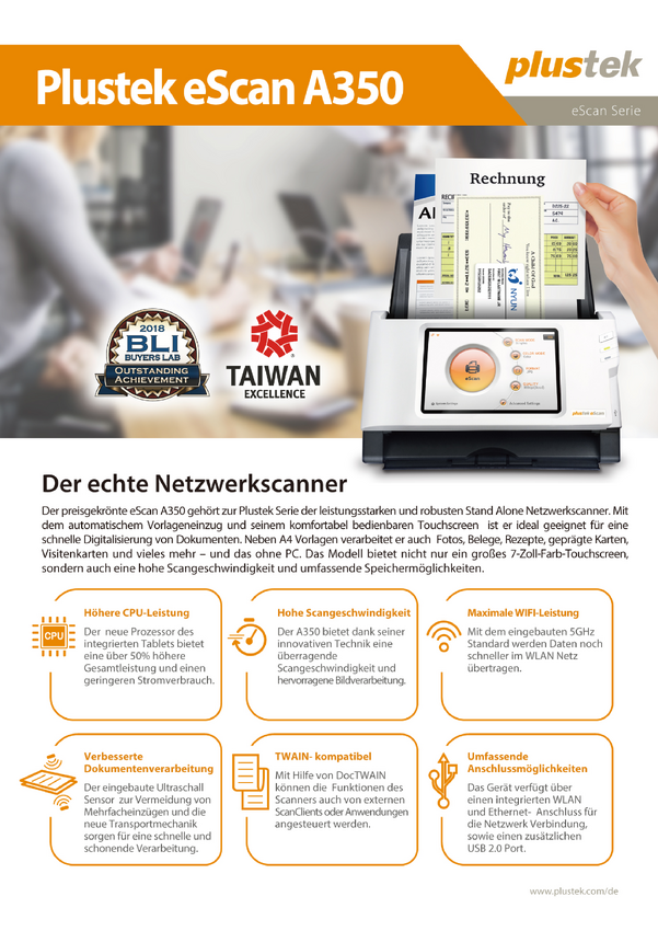 Skaner sieciowy Plustek eScan A350 Essential A4