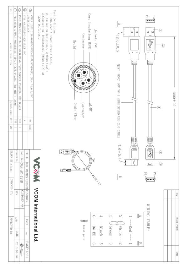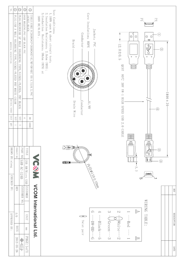 Kabel USB 2.0, zakończony wtykami USB: A4 męski mini-B5 męski, 26AWG + 28AWG, 1.8mb