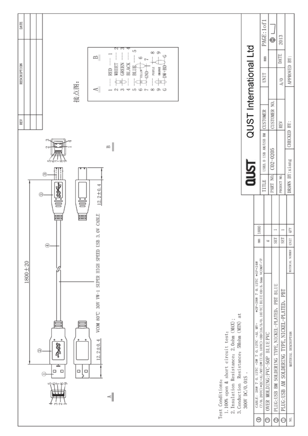 Kabel USB zakończony wtykami USB: A4 męski mini-B5 męski, 1.8mb