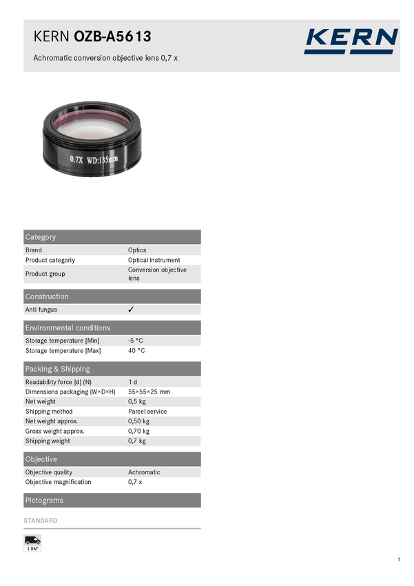 Obiektyw odłączany do mikroskopu Kern OZBA5613 OZB-A5613