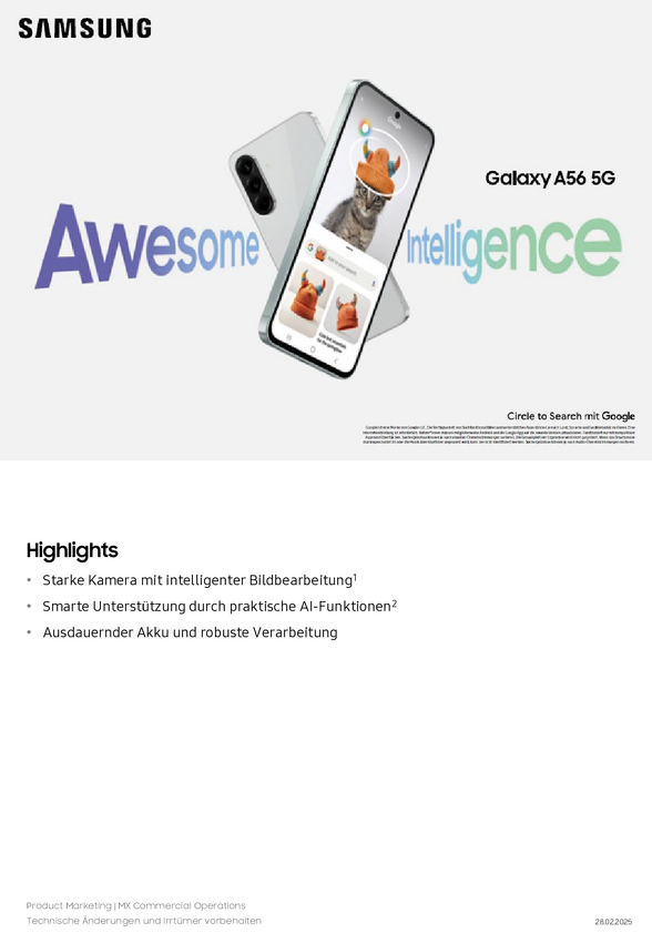 Samsung Galaxy A56 5G Smartfon Dual-SIM 256 GB 17 cm (6.7 cal) 50 MPx, 12 MPx, 5 MPx Android™ 15 jasnoszary