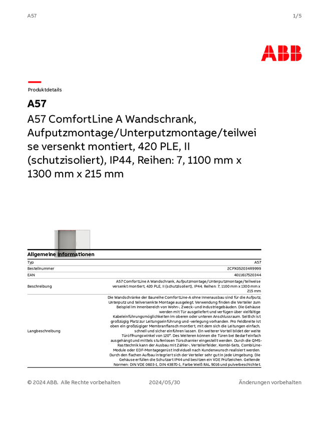 Striebel & John 2CPX052034R9999 A57 Pusta szafka podtynkowy, nadtynkowy, częściowo wpuszczony Content 1 szt.