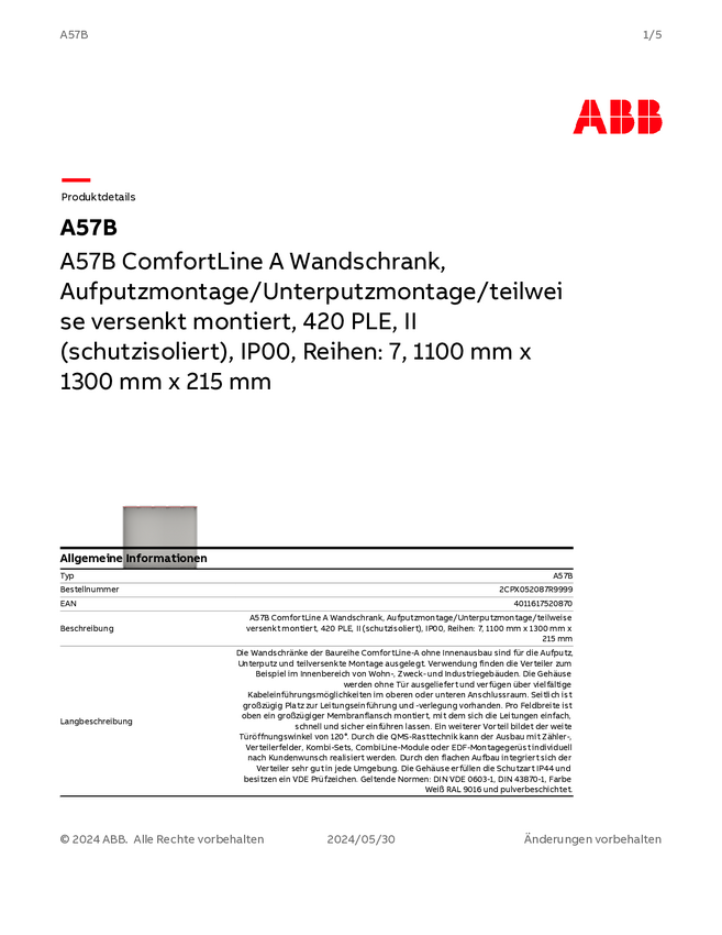 Striebel & John 2CPX052087R9999 A57B Pusta szafka nadtynkowy Ilość rzędów = 7 Content 1 szt.