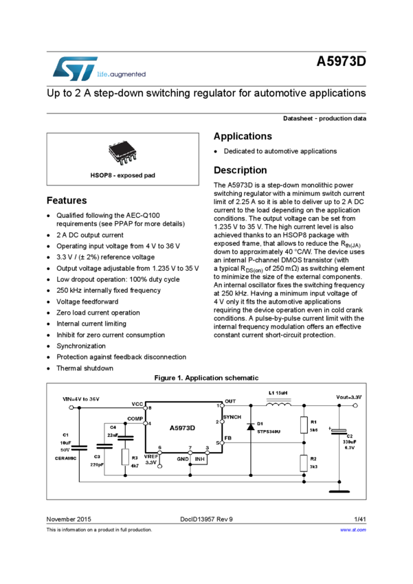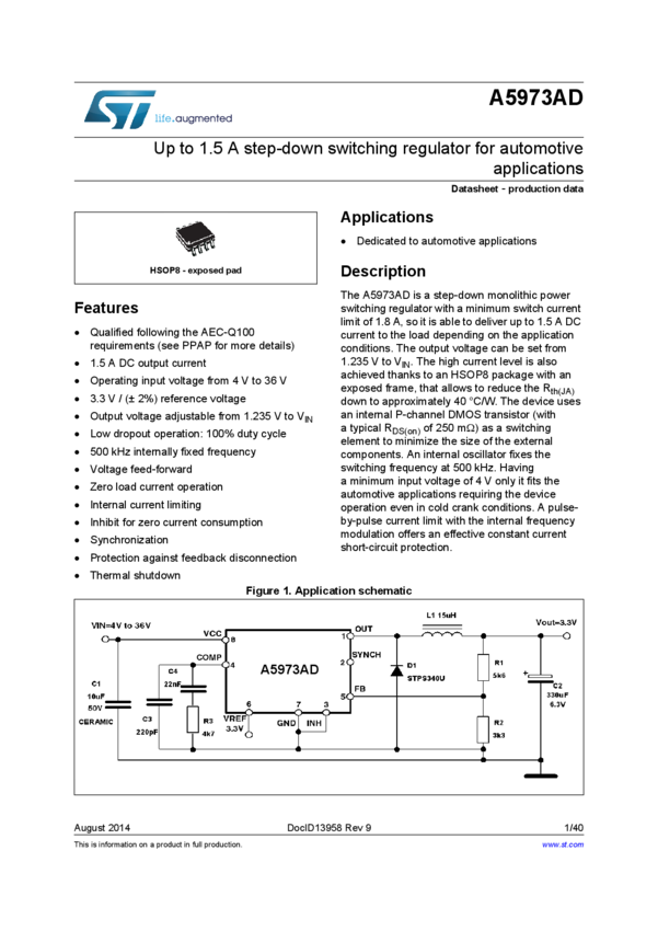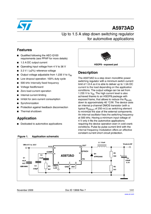 Up to 1.5 A step down switching regulator for automotive applications