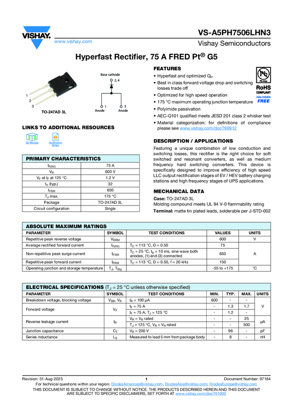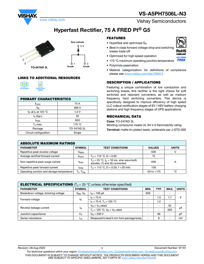 Hyperfast Rectifier, 75 A FRED Pt® G5