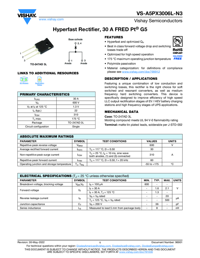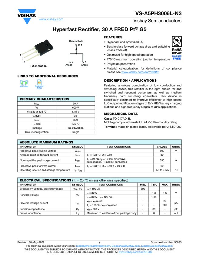 Hyperfast Rectifier, 30 A FRED Pt® G5