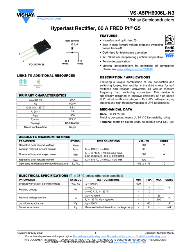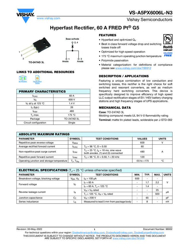 Hyperfast Rectifier, 60 A FRED Pt® G5