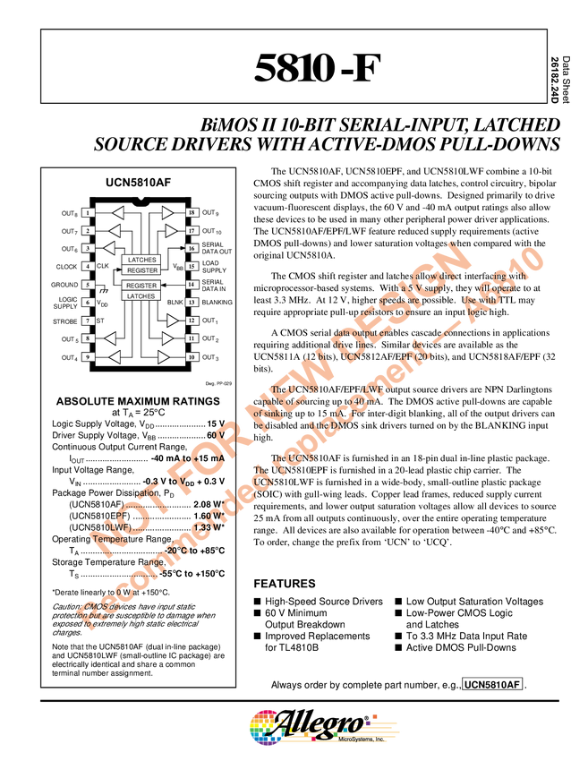 VACCUM FLUORESCENT DISPLAY DRIVER DIL18 podobne: UCN5810, a6810xa