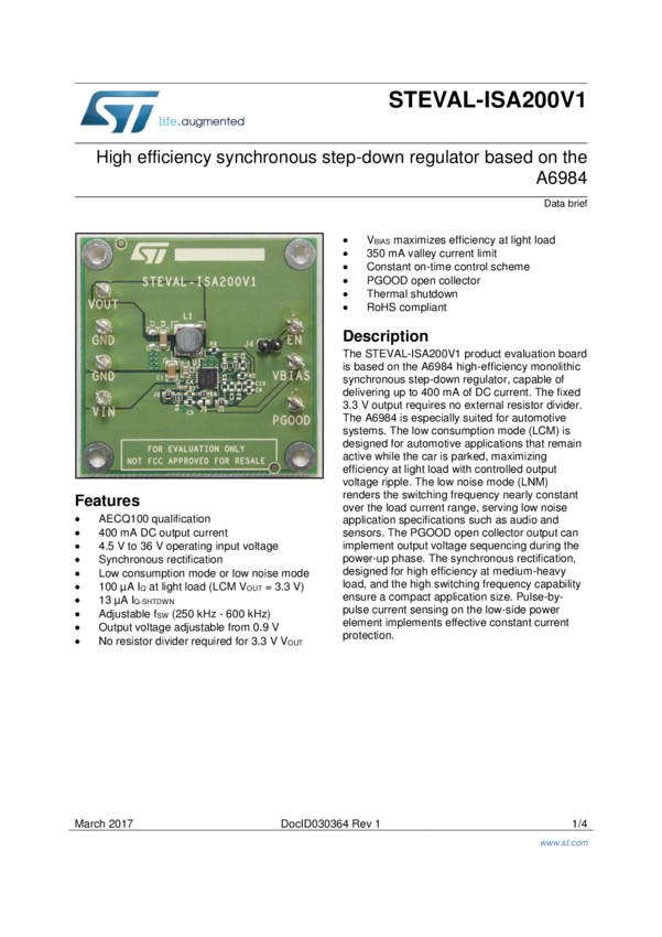 38 V, 0.5 A synchronous step-down switching regulator evaluation board based on A6985F3V3