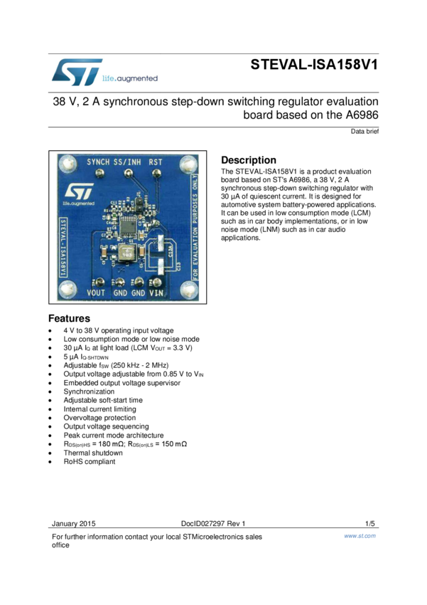 38 V, 1.5 A synchronous step-down switching regulator evaluation board based on A6986F5V