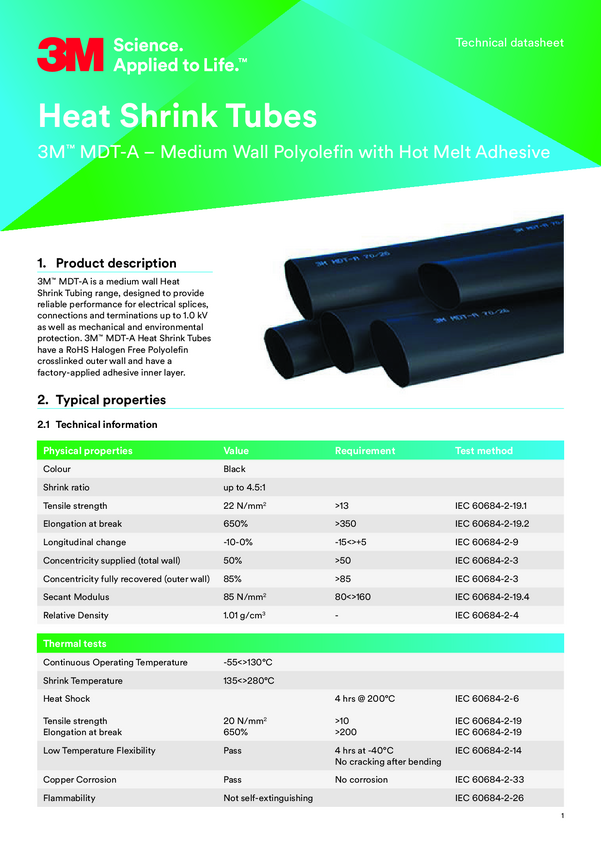3M MDT-A70/26 Rurka termokurczliwa z klejem, 3:1, od 70 mm do 26 mm, 1 m