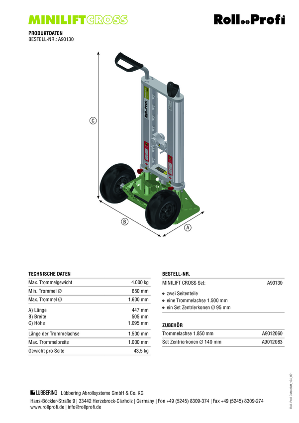 Lübbering MINILIFT CROSS A90130 produkt uniwersalny Wózek transportowy Maksymalne obciążenie: 4000 kg