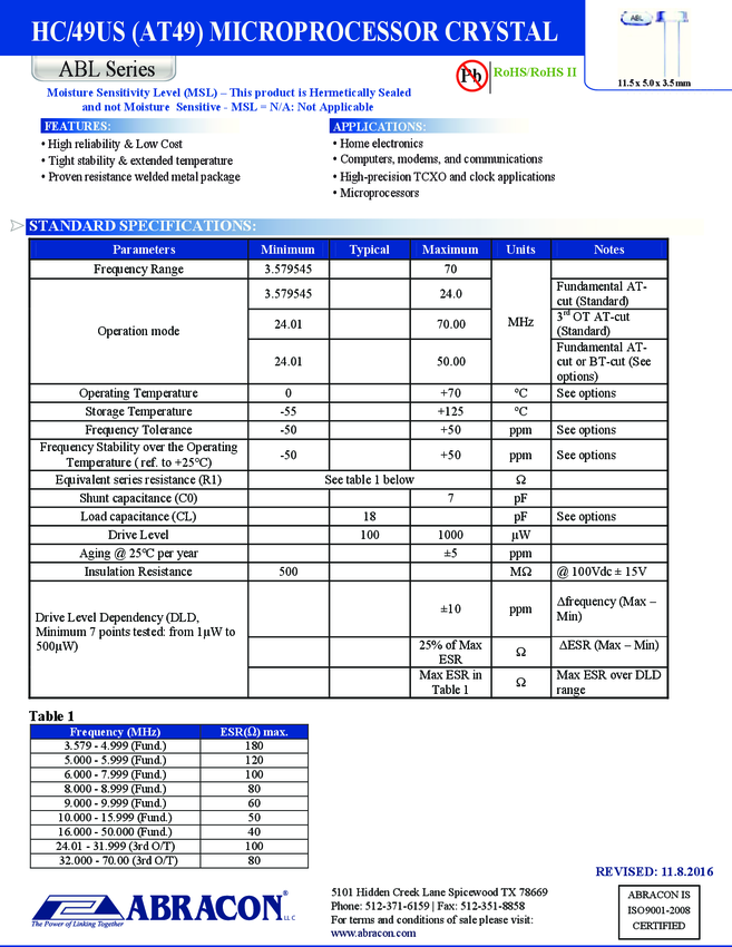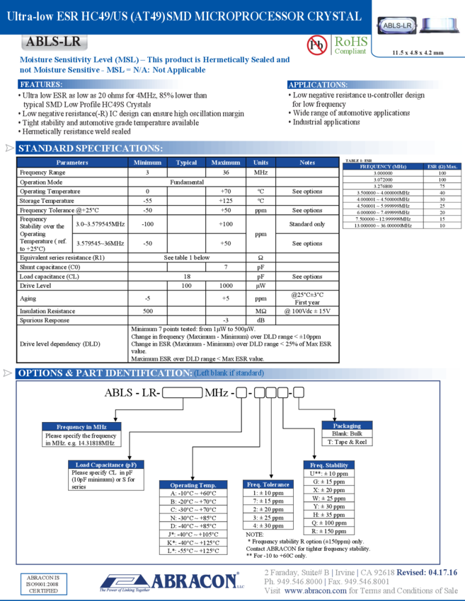 CRYSTAL, SMD, uP, Low Profile, HC/49US (AT49), 16.000MHz, T&R