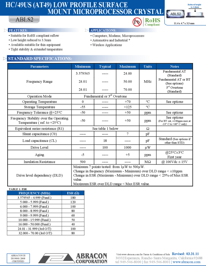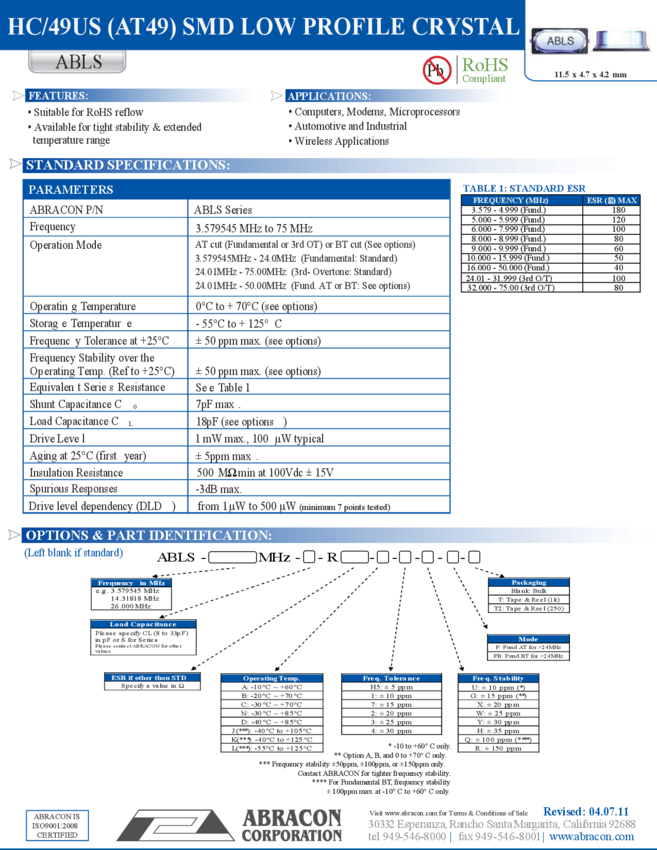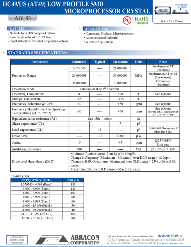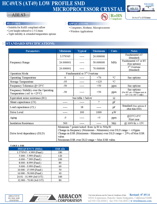CRYSTAL, SMD, uP, Low Profile, HC49/US (AT49), 3.579545MHz, T&R