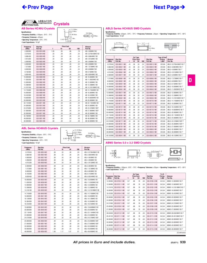 CRYSTAL, uP, TH/2-Pin, HC/49US (AT49), 10.0000MHz Bulk