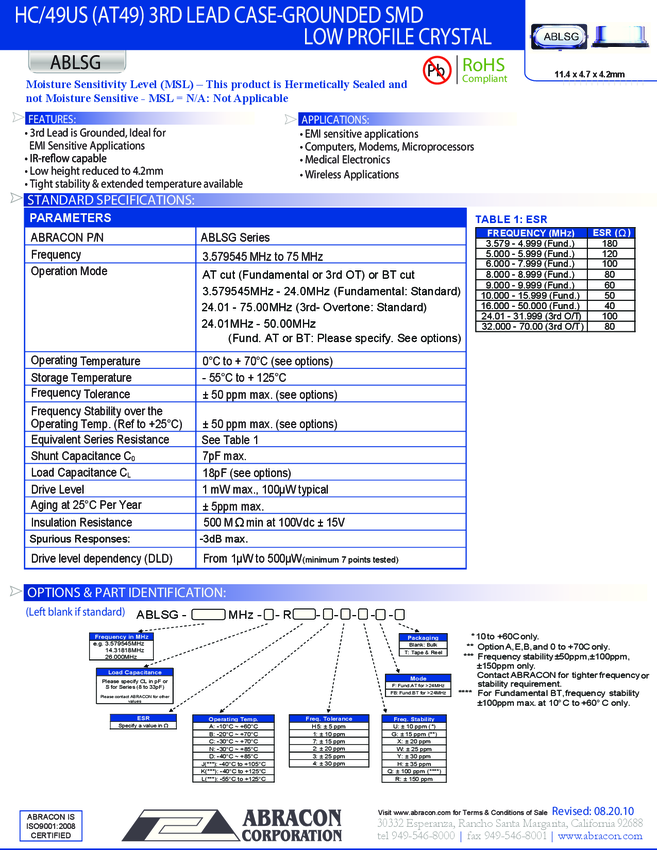 CRYSTAL 3RD LEAD GROUND FOR EMI, HC49/US SMD, 3.579545MHZ, 1