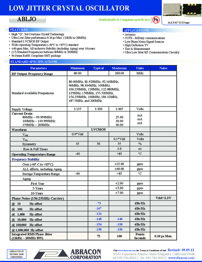 Controlled Oscillator 200MHz VCXO LVCMOS 6-Pin SMT