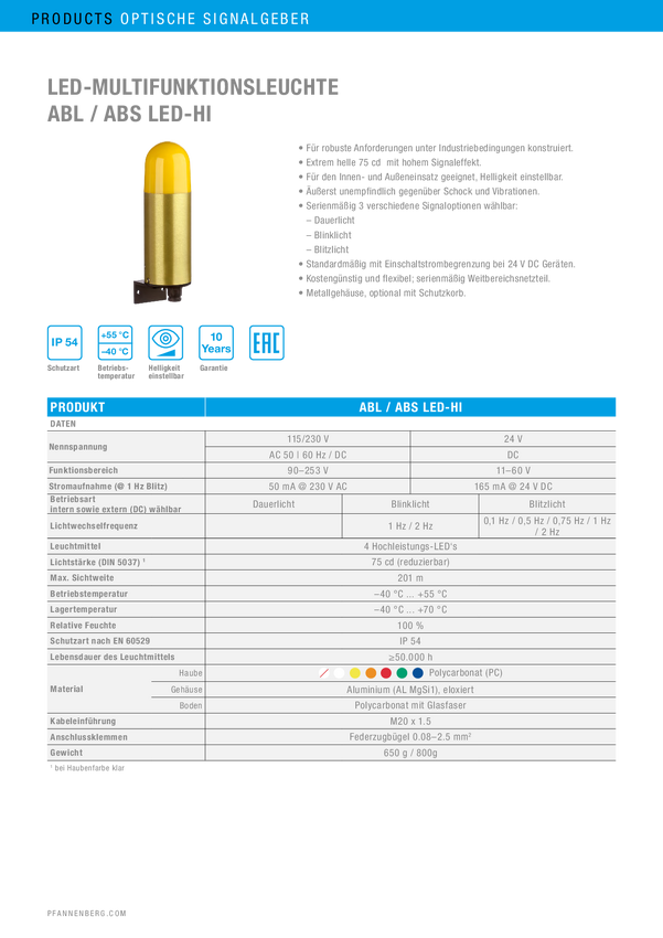 Sygnalizator świetlny Pfannenberg ABL LED HI 90-253 AC RD czerwony Flesz, światło migające, światło ciągłe 230 V/AC