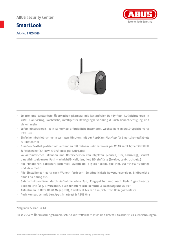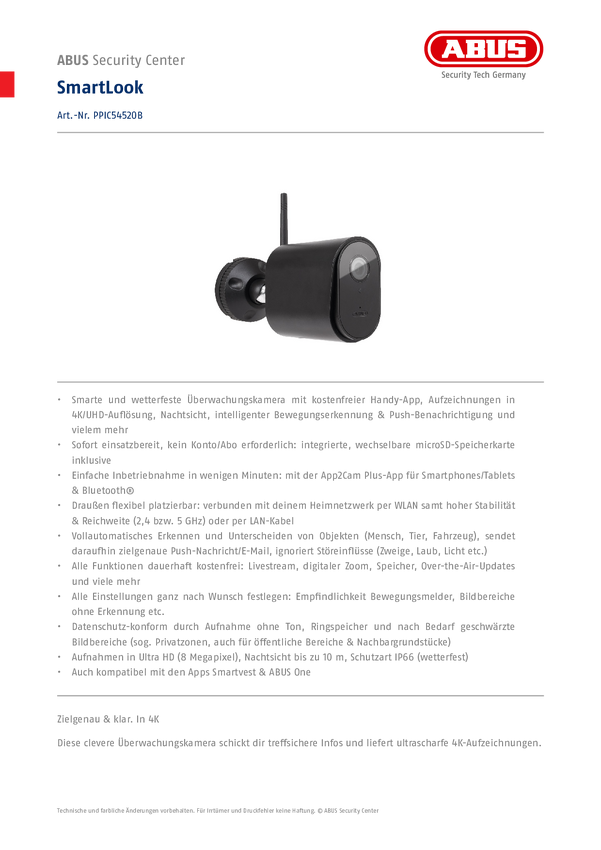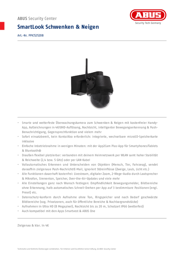 Kamera monitoringu IP ABUS SmartLook PPIC54520B WLAN 1920 x 1080 px