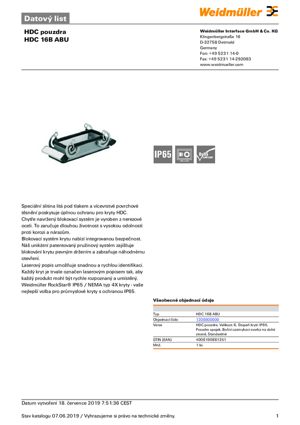 Weidmüller HDC 16B ABU 1208600000 Obudowa montażowa 1 szt.