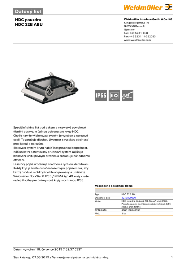 Weidmüller HDC 32B ABU 1217800000 Obudowa montażowa 1 szt.