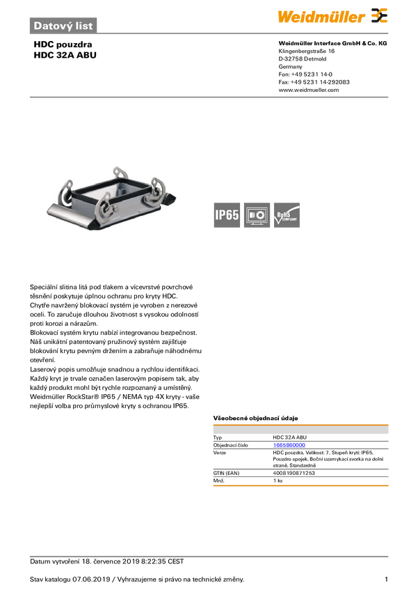 Weidmüller HDC 32A ABU 1665860000 Obudowa montażowa 1 szt.