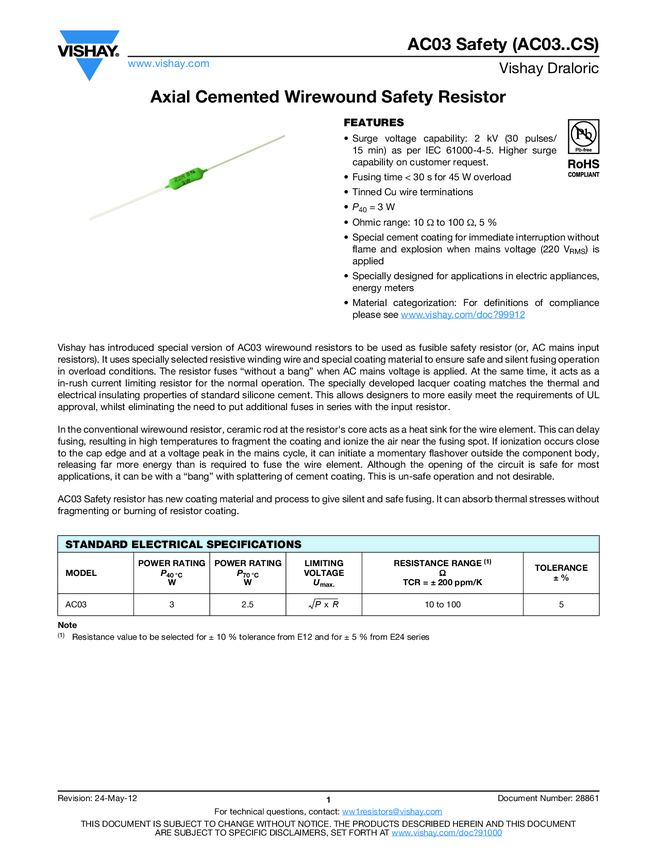 Axial Leaded, WSZ (SMD) Cemented Fusible Wirewound Safety Resistors