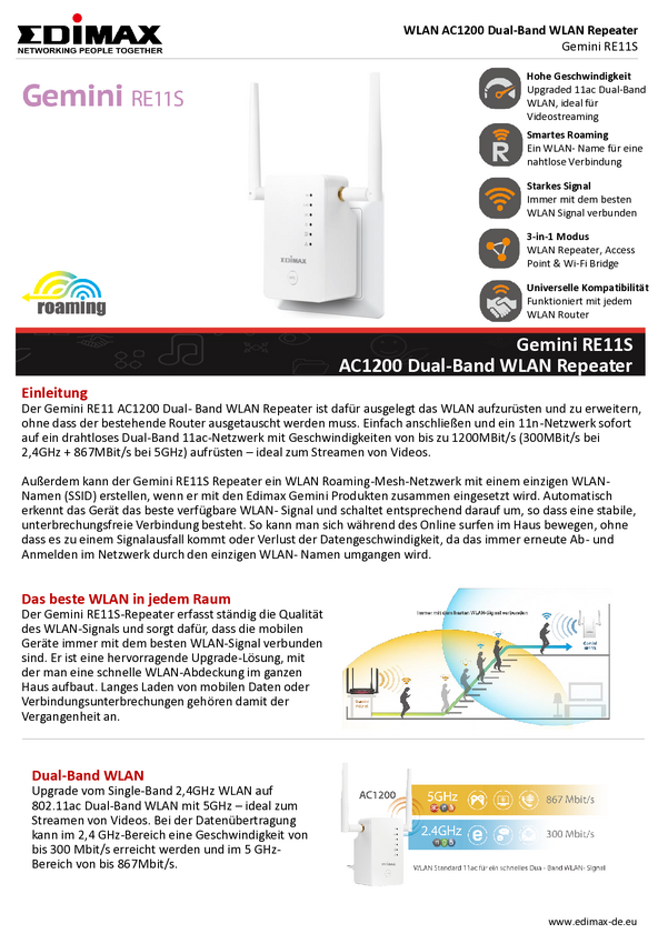 EDIMAX Repeater WLAN RE11S RE11S AC1200